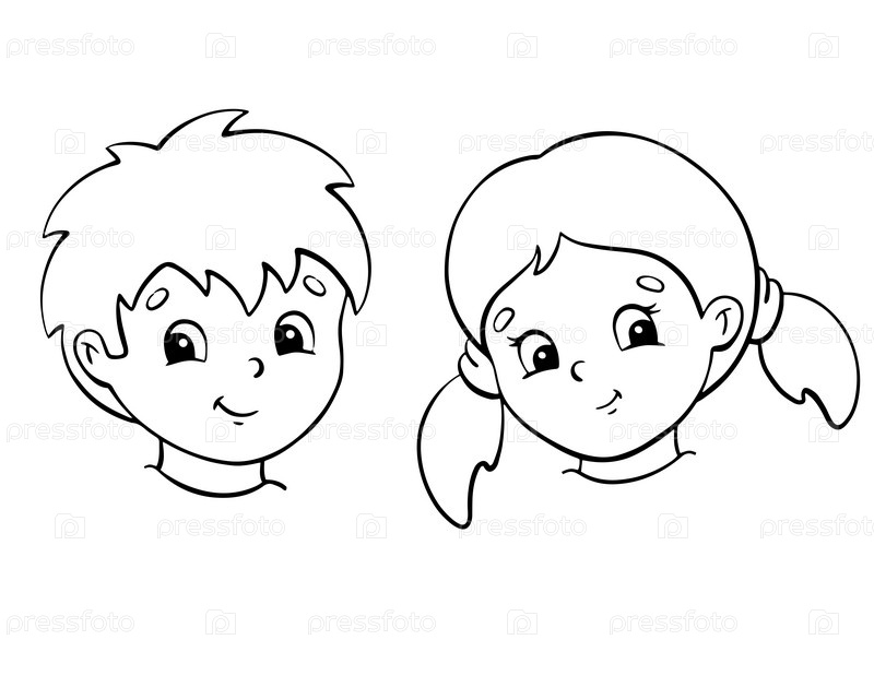 Брат и сестра. Мальчик и девочка. Раскраска для детей. Цифровая марка. Персонаж в мультяшном стиле. Векторная иллюстрация на белом фоне