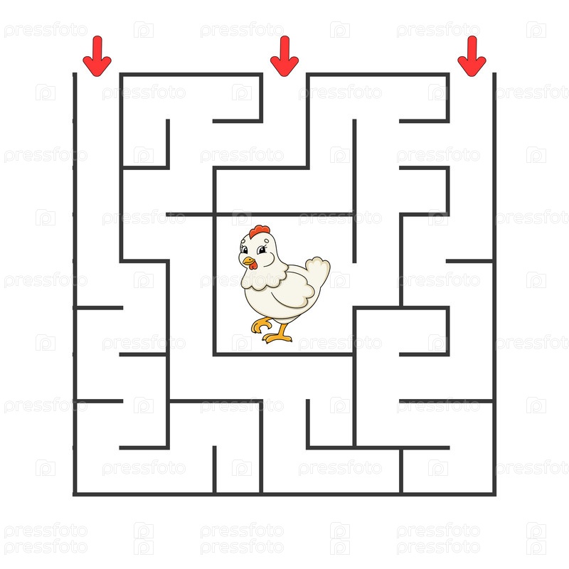 Квадратный лабиринт. Игра для детей. Головоломка для детей. Персонаж мультфильма. Загадка лабиринта. Найди правильный путь. Развитие логического и пространственного мышления. Векторная иллюстрация