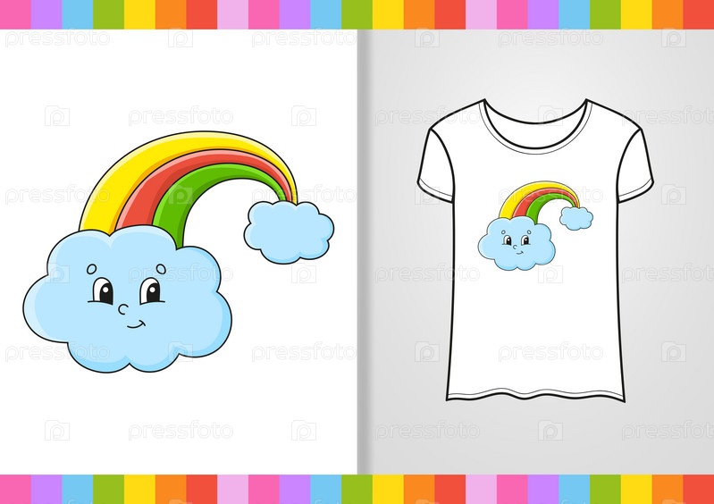 Дизайн футболки. Милый персонаж на футболке. Нарисованный от руки. Мультяшный стиль. Изолированный на белом фоне. Векторная иллюстрация