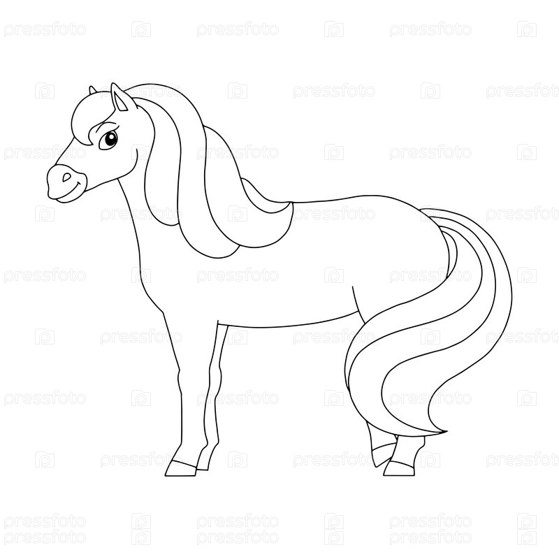 Милая лошадь. Фермерское животное. Раскраска для детей. Мультяшный стиль. Векторная иллюстрация на белом фоне
