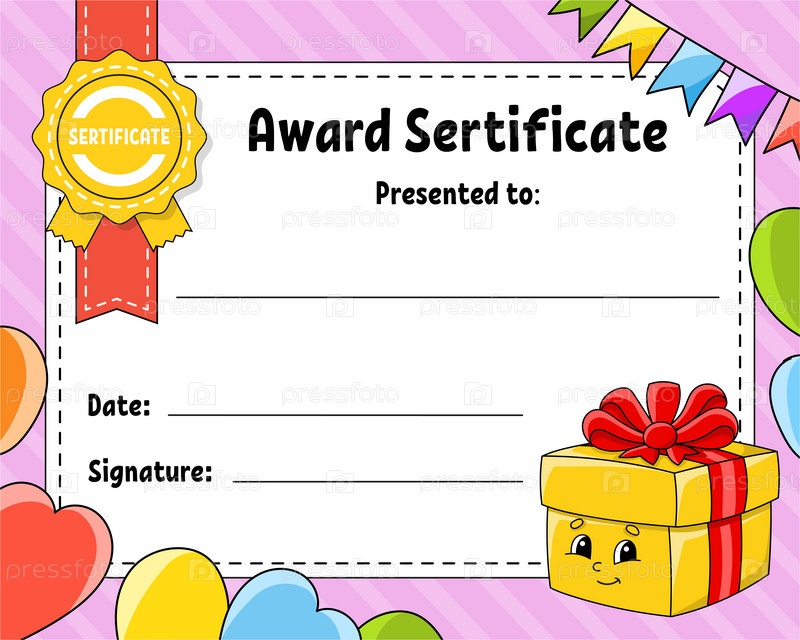 Шаблон сертификата о награждении. Красочный школьный и дошкольный диплом. Для малышей и детей. Векторная иллюстрация