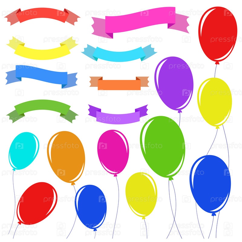 Набор из 8 плоских цветных изолированных баннерных лент и 11 воздушных шаров на веревках. Подходит для дизайна