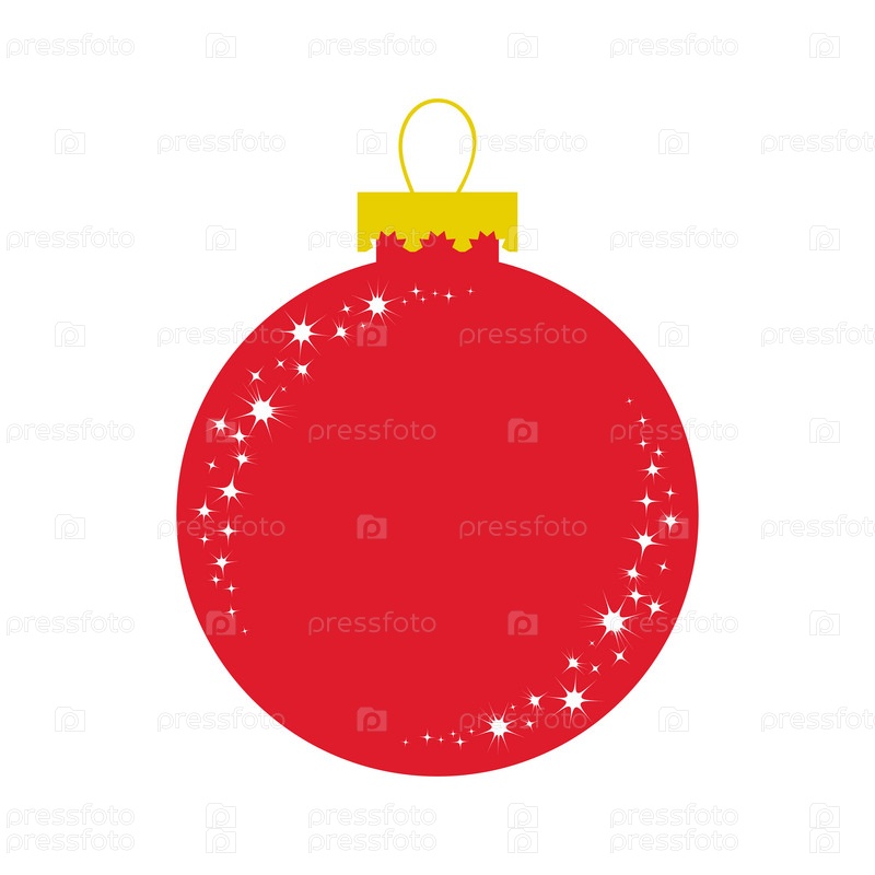 Красный стеклянный шар. Украшение на елку на Рождество. Плоская цветная изолированная картинка