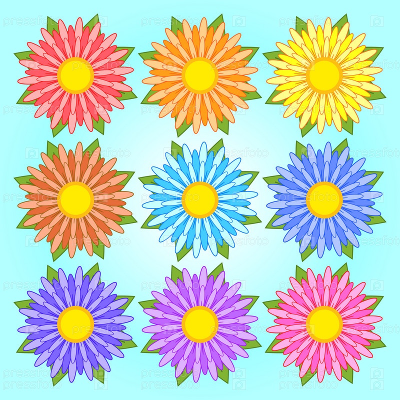Набор плоских цветных изолированных цветов. Векторная иллюстрация. Подходит для дизайна
