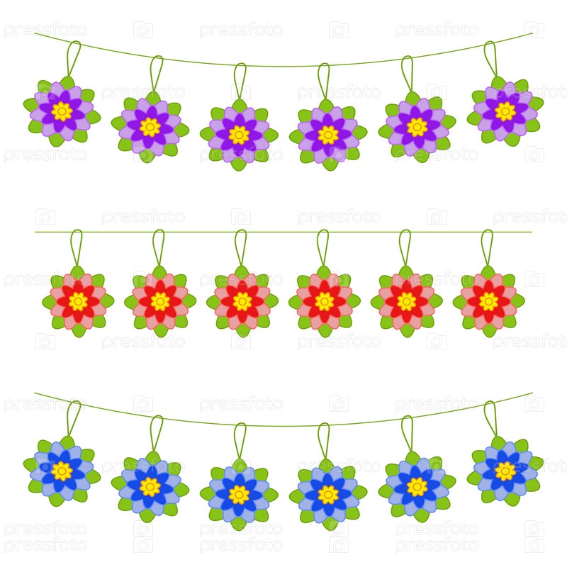 Набор плоских цветных изолированных гирлянд цветов. Подходит для дизайна