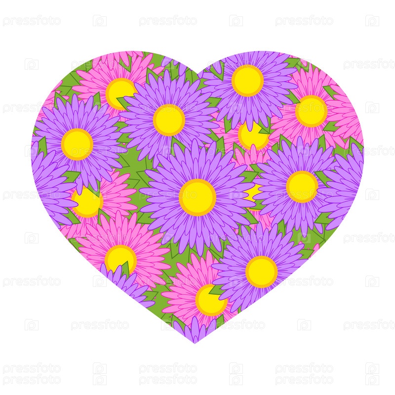 Красочные изолированные сердца на белом фоне. С романтическим цветочным узором. Простая плоская векторная иллюстрация. Подходит для украшения открыток, свадеб, праздников, сайтов