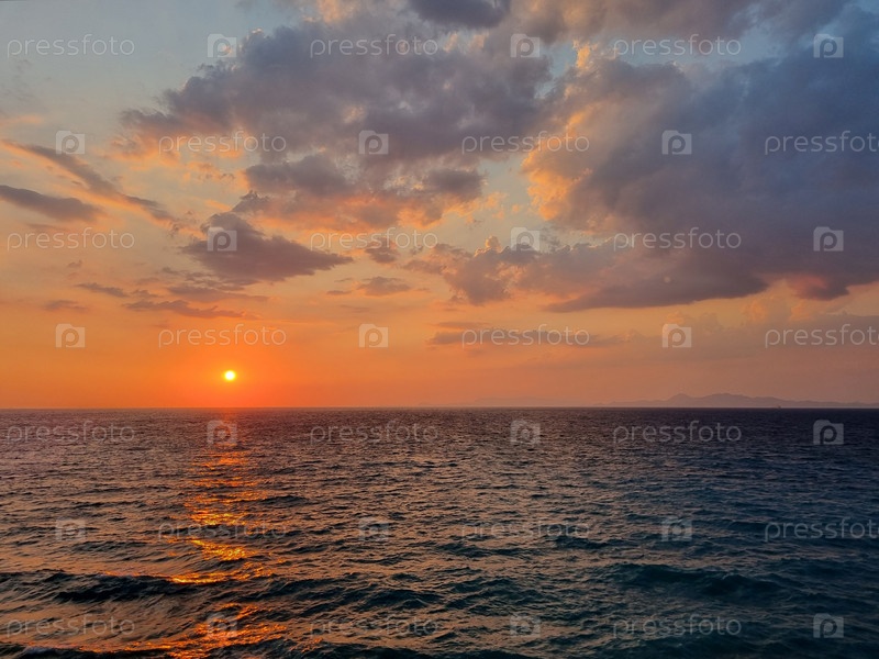 Закат над Эгейским морем на острове Родос, Греция