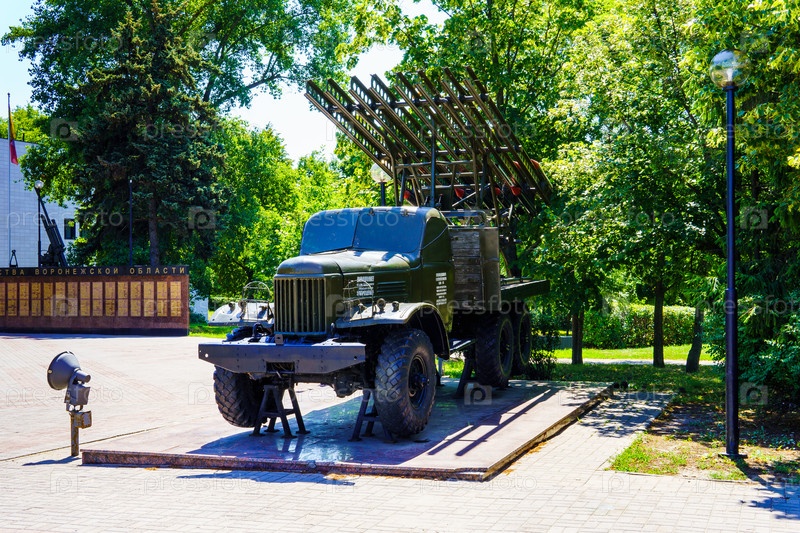 Городской пейзаж. Боевая машина реактивной артиллерии БМ-13 "Катюша". Парк Патриотов. Воронеж