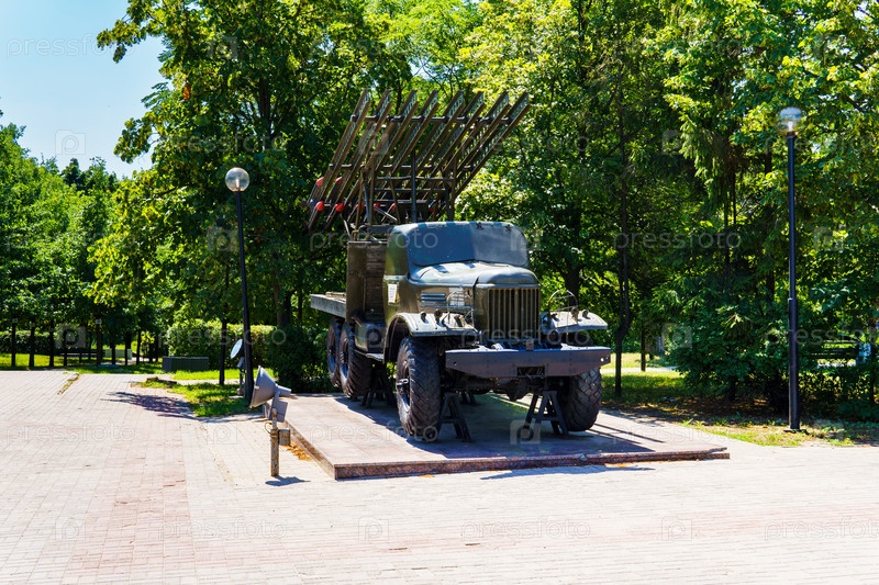 Городской пейзаж. Боевая машина реактивной артиллерии БМ-13 "Катюша". Парк Патриотов. Воронеж