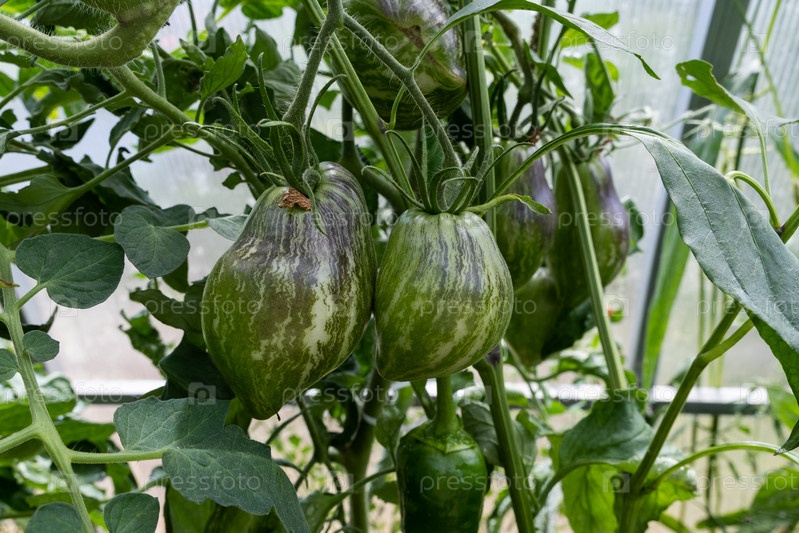 Зеленые неспелые помидоры в теплице