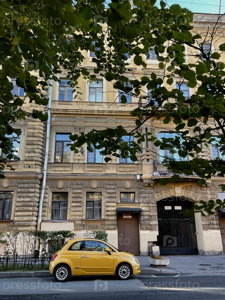 Желтый автомобиль на фоне исторического здания, Санкт-Петербург, Россия