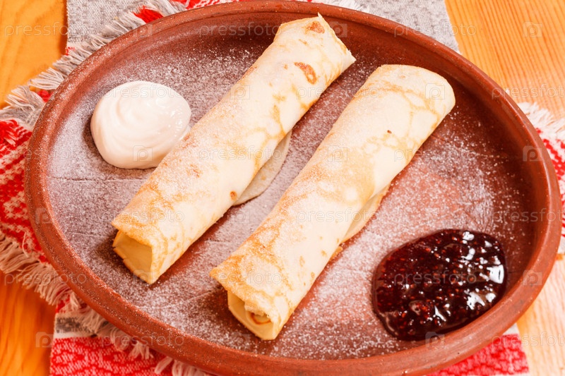 Блинчики с вареньем и сливками