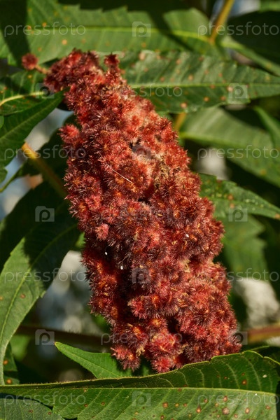 Сумах оленерогический или пушистый сумах (Rhus typhina) кустарник или небольшое дерево семейства Сумаховые (Anacardiaceae)