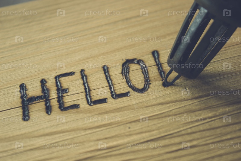 Слово выжжено вручную на плоской деревянной доске