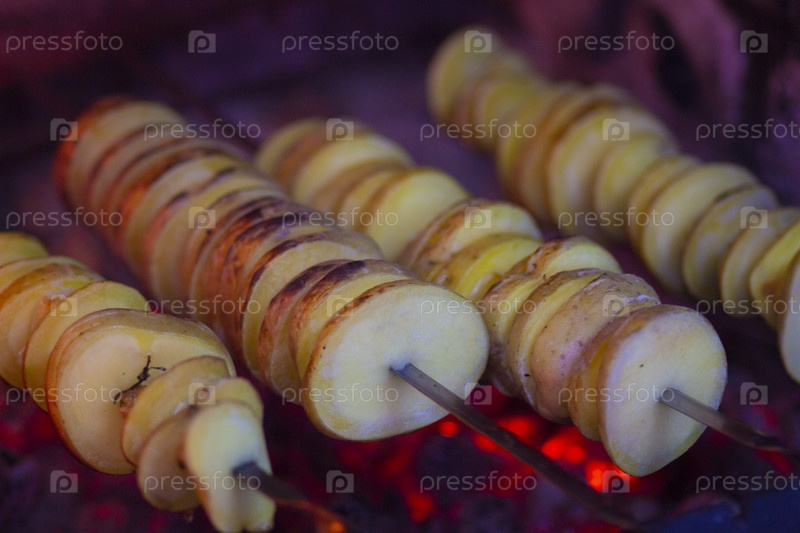 Картофельные чипсы на палочке, в стиле корейского картофеля фри