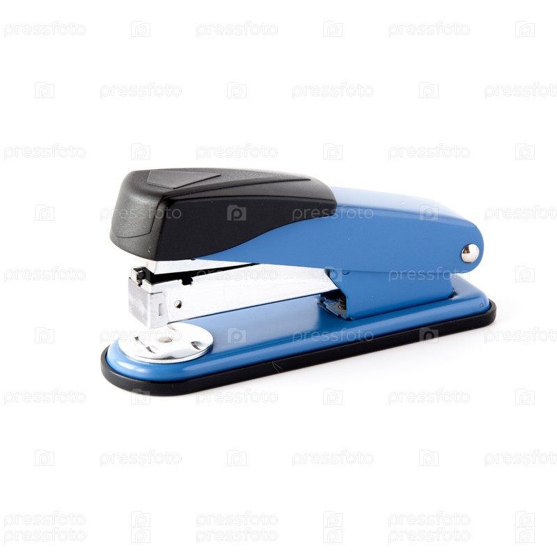 Синий степлер на белом фоне