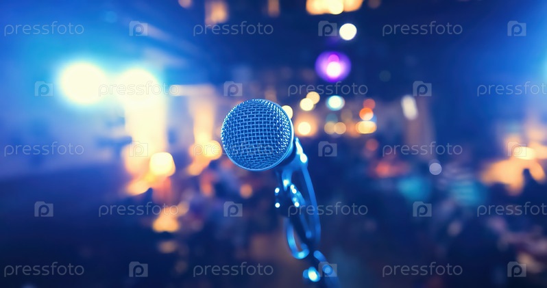 Микрофон на сцене на фоне зрительного зала
