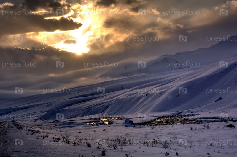 Восход солнца в долине Суусамыр, Кыргызстан, выборочный фокус