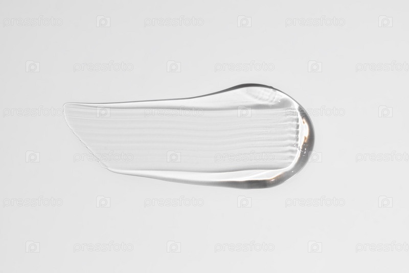 Чистый прозрачный косметический гель-мазок на белом фоне, текстура глицерина для ухода за кожей. вид сверху