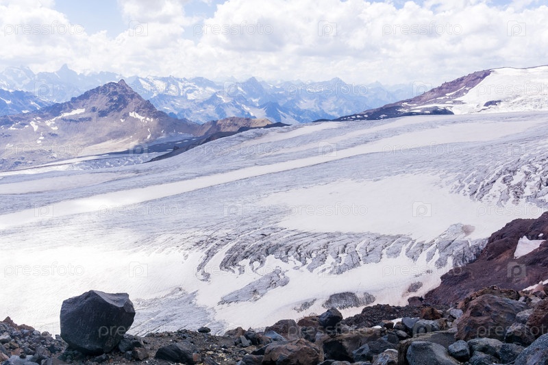 Горный пейзаж с видом на поверхность высокогорного ледника
