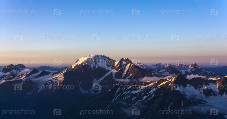 Горные вершины в лучах рассвета, природный ландшафт