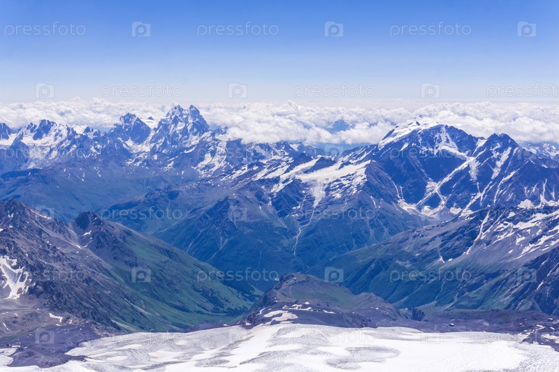 Красивый высокогорный пейзаж, вид с вершины Эльбруса