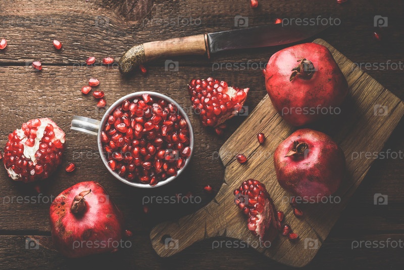Металлическая кружка, полная зерен граната