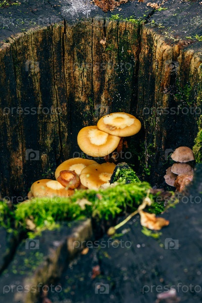 Грибы и мох на стволе дерева,