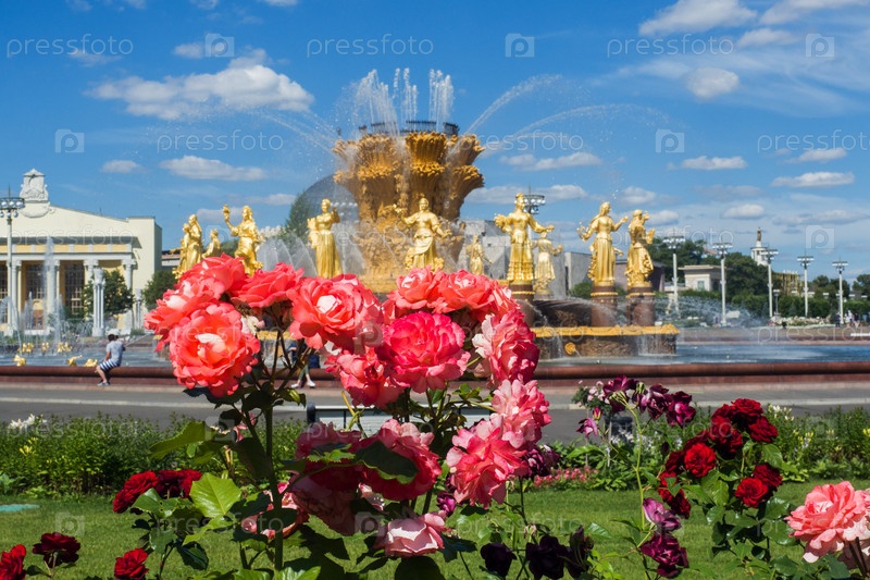 Москва, Россия - 24 июня 2019 года: Фонтан «Дружба народов» в парке ВДНХ в Москве