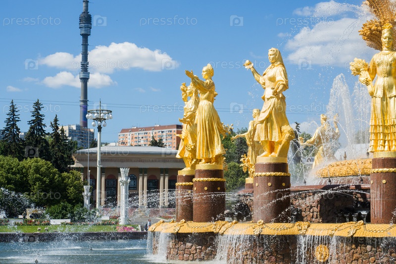 Москва, Россия - 24 июня 2019 года: Фонтан «Дружба народов» в парке ВДНХ в Москве
