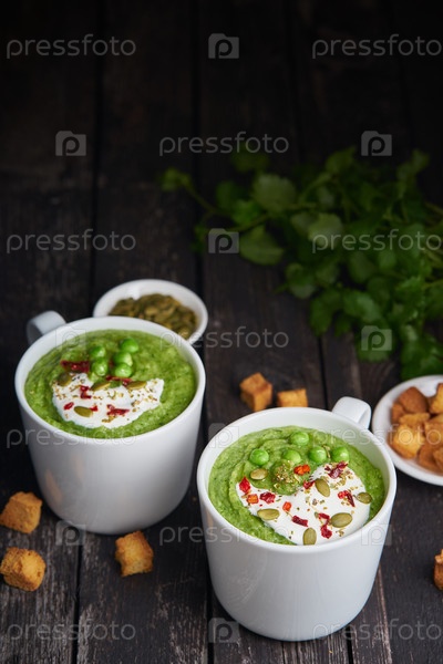 Крем-суп из брокколи на темном деревянном фоне, вертикальный, пространство для копирования