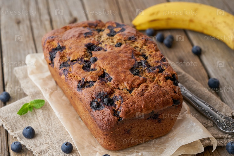 Банановый хлеб на старом темном деревянном деревенском столе, кусок торта с бананом, крупный план