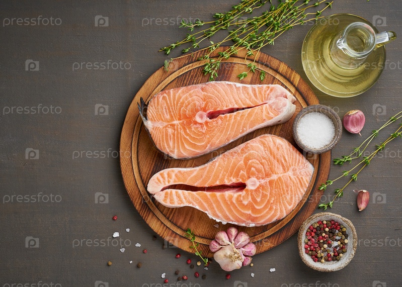 Два стейка лосося, вид сверху, место для копирования. Филе рыбы, большие нарезанные порции на