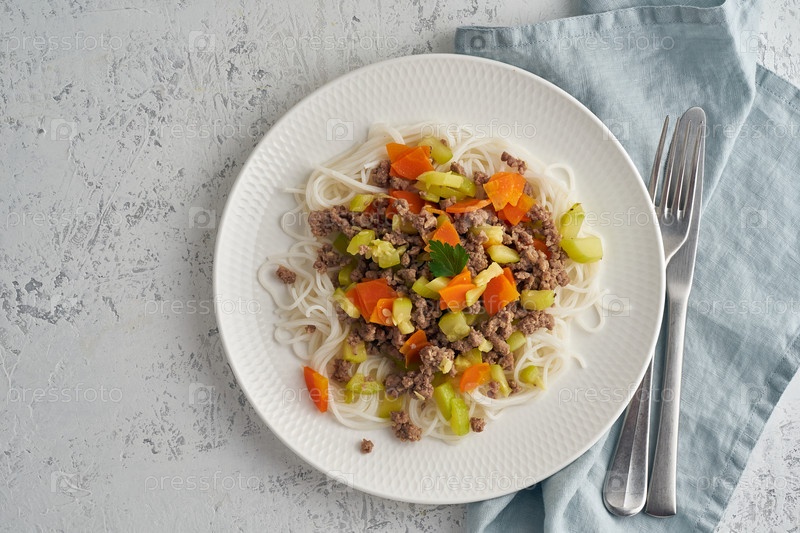 Здоровое питание, диета fodmap dash и безглютеновая диета, лапши с морковью и цуккини и мясным фаршем