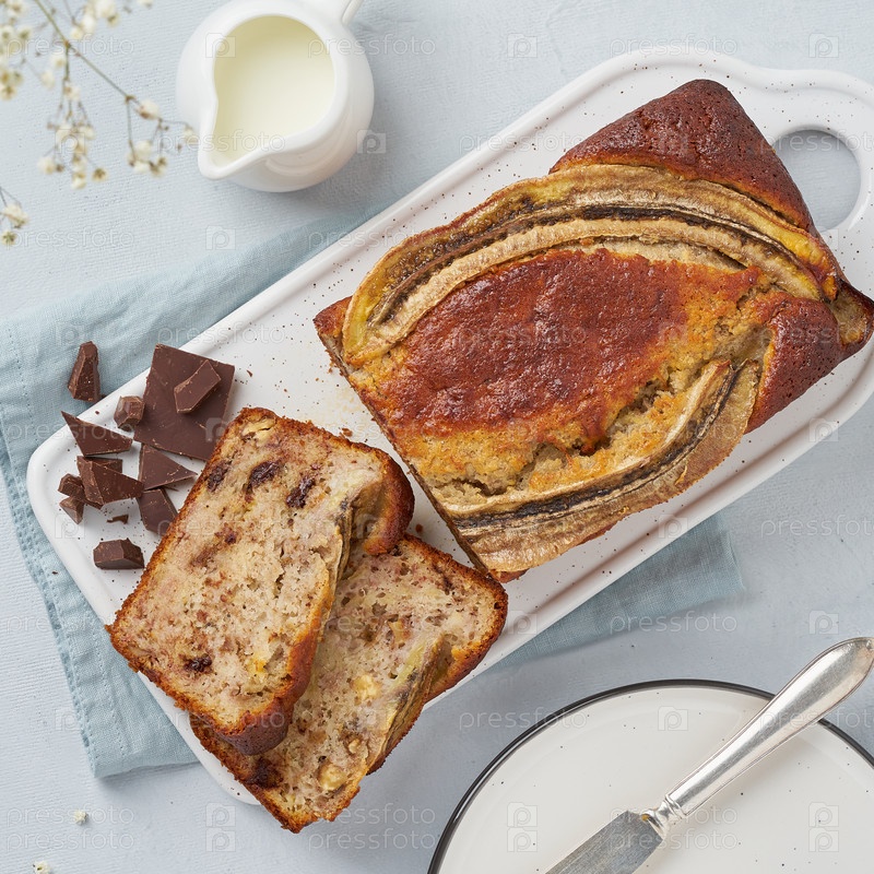 Банановый хлеб. Кусочки пирога с бананом, шоколадом, грецким орехом. Традиционная американская кухня