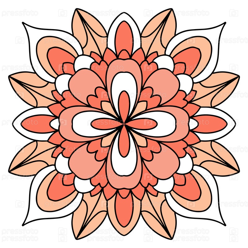 Цветочная мандала. Геометрический цветочный узор. Винтажный декоративный элемент. Круглый узор мандалы для хны, мехенди, татуировки, украшения. Векторная иллюстрация