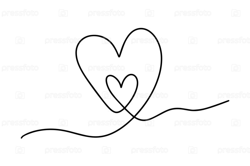 Два сердца, непрерывный рисунок одной линией. Концепция Дня святого Валентина. Пара сердец, модная минималистская иллюстрация. Я люблю минималистское линейное искусство