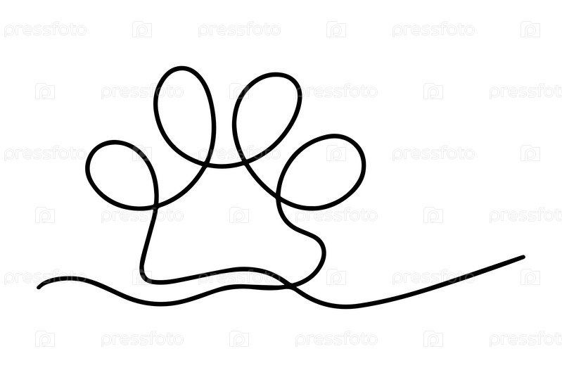 Непрерывный рисунок собачьей лапы. Отпечаток лапы с одной редактируемой линией. Минимальное линейное искусство. След животного. Векторная иллюстрация