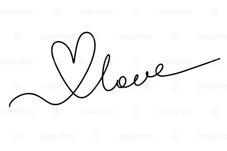 Непрерывный рисунок с одной линией сердца и надписью love. Концепция Дня святого Валентина. Модная минималистическая иллюстрация. Я люблю минималистское линейное искусство. Вектор