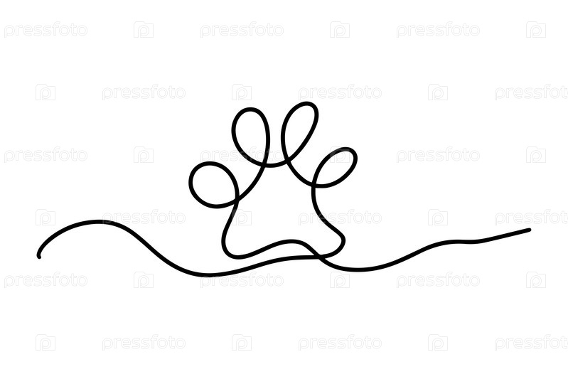 Непрерывный рисунок собачьей лапы. Отпечаток лапы с одной редактируемой линией. Минимальное линейное искусство. След животного. Векторная иллюстрация