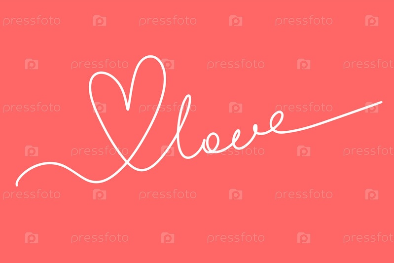 Непрерывный рисунок с одной линией сердца и надписью love. Концепция Дня святого Валентина. Модная минималистическая иллюстрация. Я люблю минималистское линейное искусство. Вектор