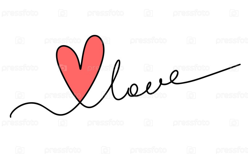 Непрерывный рисунок с одной линией сердца и надписью love. Концепция Дня святого Валентина. Модная минималистическая иллюстрация. Я люблю минималистское линейное искусство. Вектор