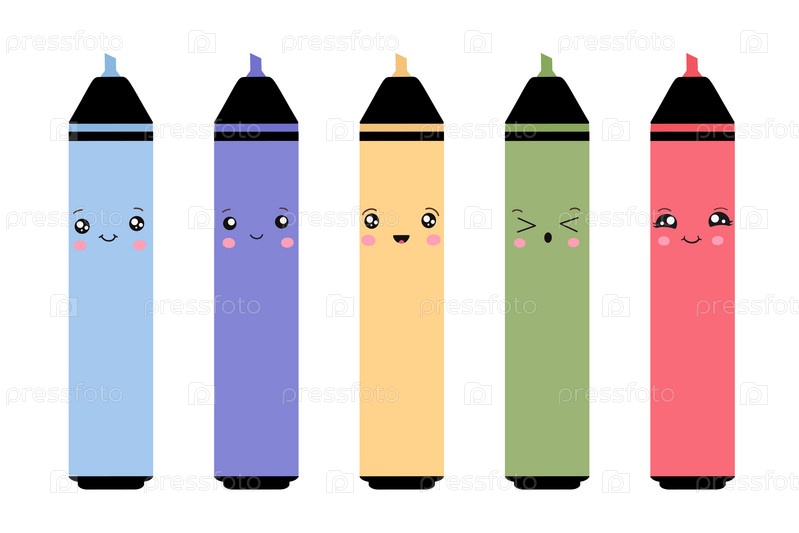 Набор красочных маркеров с забавными эмодзи. Векторная иллюстрация на белом фоне