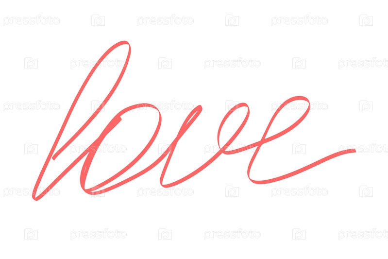 Векторная иллюстрация Любовь, написанная от руки в одну строку. Контур красного текста на белом фоне. Однострочное письмо в стиле каллиграфии. Слово Любовь. Нарисовано от руки, одна строка. Каллиграфия тонкая линия