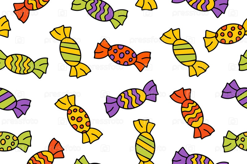Векторный бесшовный образец с сладостями и конфетами в стиле doodle