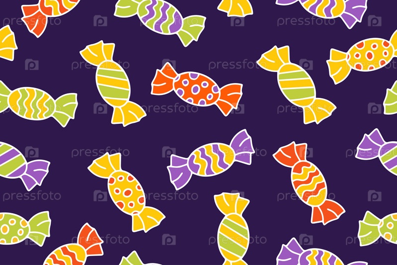 Векторный бесшовный образец с сладостями и конфетами в стиле doodle