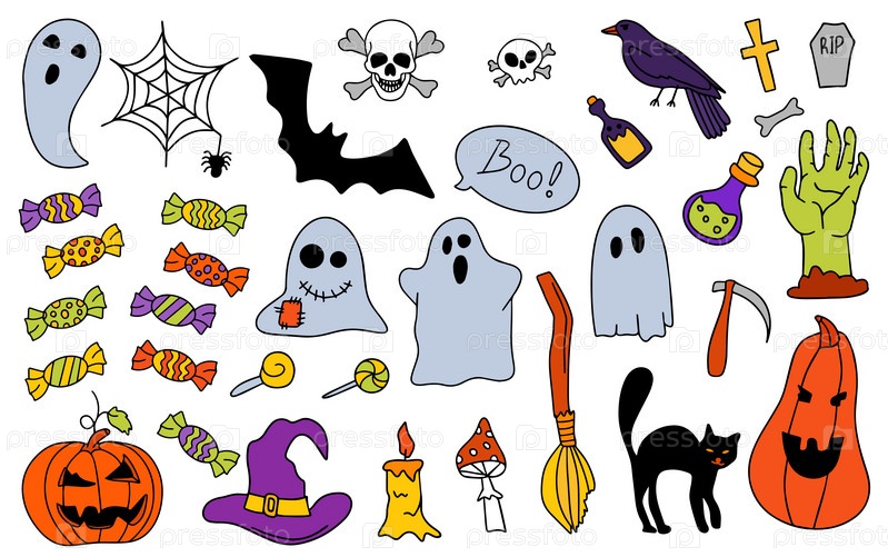 Набор Happy Halloween. Волшебная коллекция клипартов в стиле, нарисованном от руки. Мистические креативные современные эстетические элементы Doodle