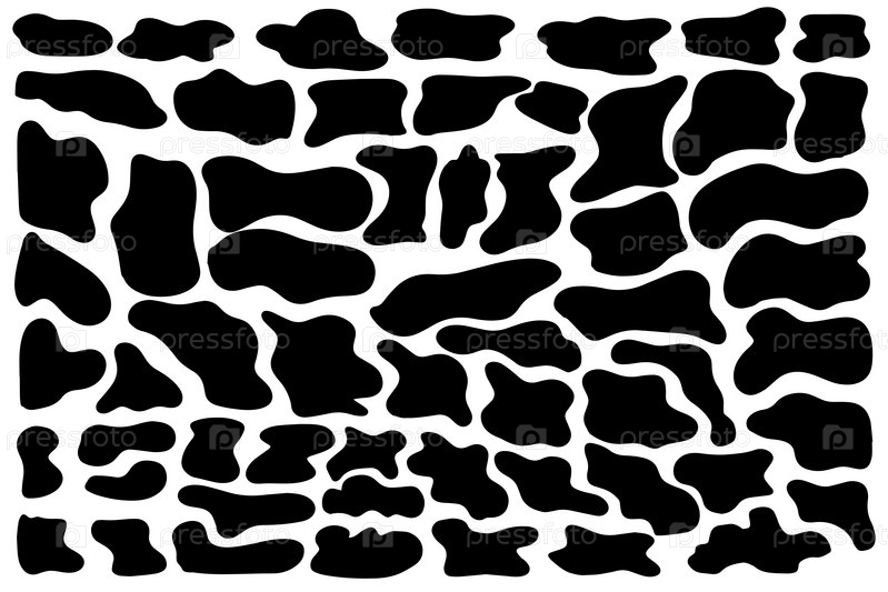 Набор черных пятен органической жидкости. Абстрактные пятна. Плоский дизайн, вектор. Векторная иллюстрация
