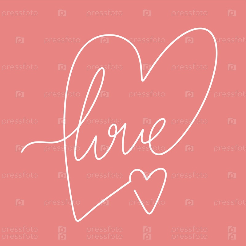 Непрерывный рисунок с одной линией сердца и надписью love. Концепция Дня святого Валентина. Модная минималистическая иллюстрация. Я люблю минималистское линейное искусство. Вектор