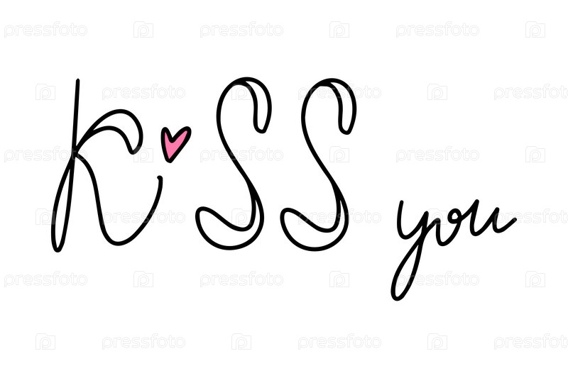 Каллиграфическая надпись слова 'kiss you' в виде непрерывной линии на белом фоне